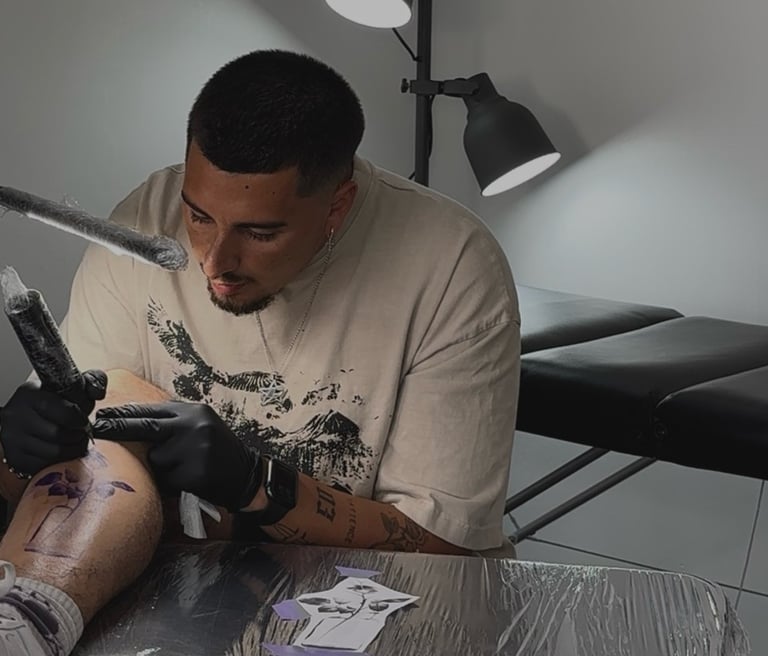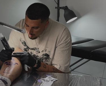 Hi, mein Name ist Kevin Lamanna, ich bin 26 Jahre alt und ursprünglich aus Italien, habe aber die Hälfte meines Lebens in Deutschland verbracht. Schon als Kind hatte ich eine große Leidenschaft für Kunst, und ich bin unglaublich dankbar, dass ich diese heute als meinen Beruf leben darf. Das Schönste für mich ist die Arbeit mit Menschen – ich liebe es, die Aufregung vor dem ersten Tattoo-Termin mitzuerleben und zu sehen, wie zufrieden und glücklich meine Kunden nach der Sitzung sind. Diese Momente motivieren mich jeden Tag aufs Neue!